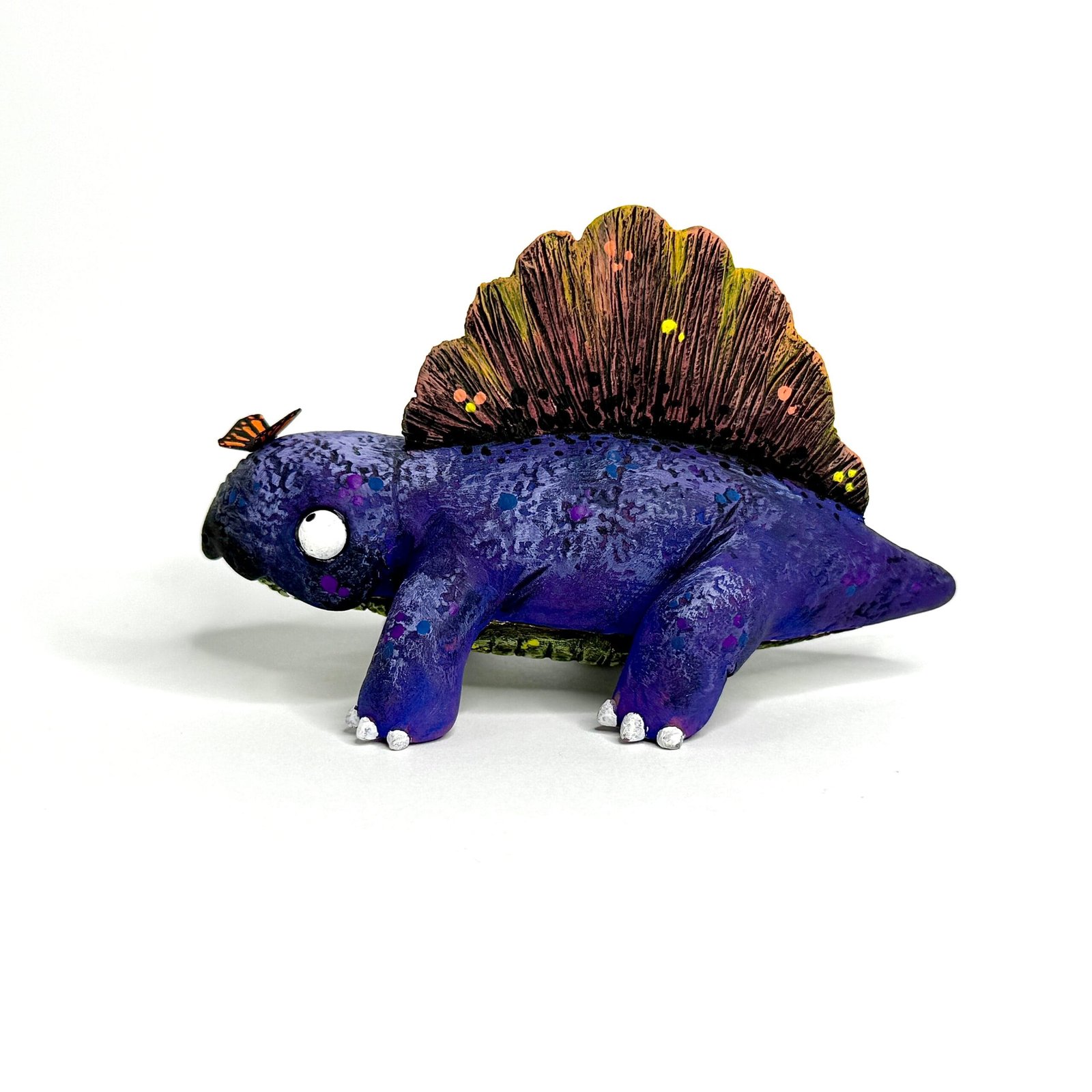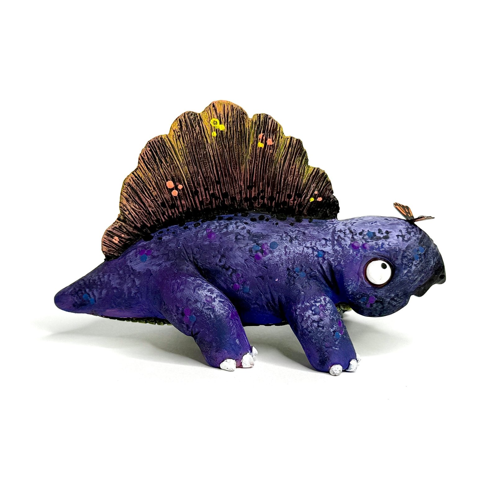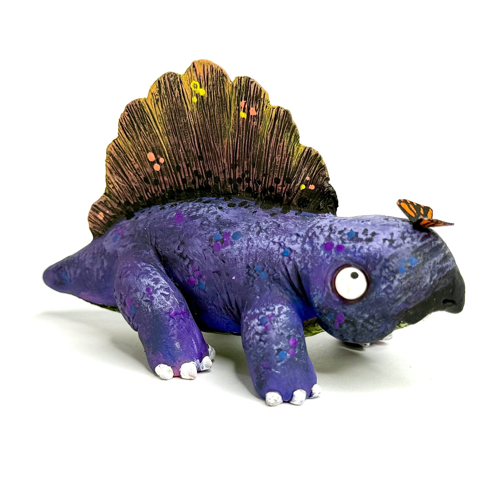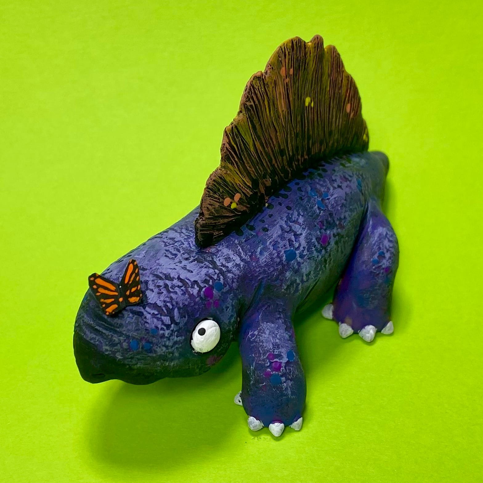 Hey, dino fans! I’m Liza from Hodge Podge Art Studio, and this Jurassic Zubaloo Dimetrodon brings prehistoric fun to life. For example, this purple Dimetrodon looks at a butterfly on its nose with big, goofy eyes—pure Zubaloo charm in polymer clay! Because I handcraft each one, it bursts with cute whimsy. So, grab this Jurassic Zubaloo Dimetrodon for $120 and add dino magic to your collection!