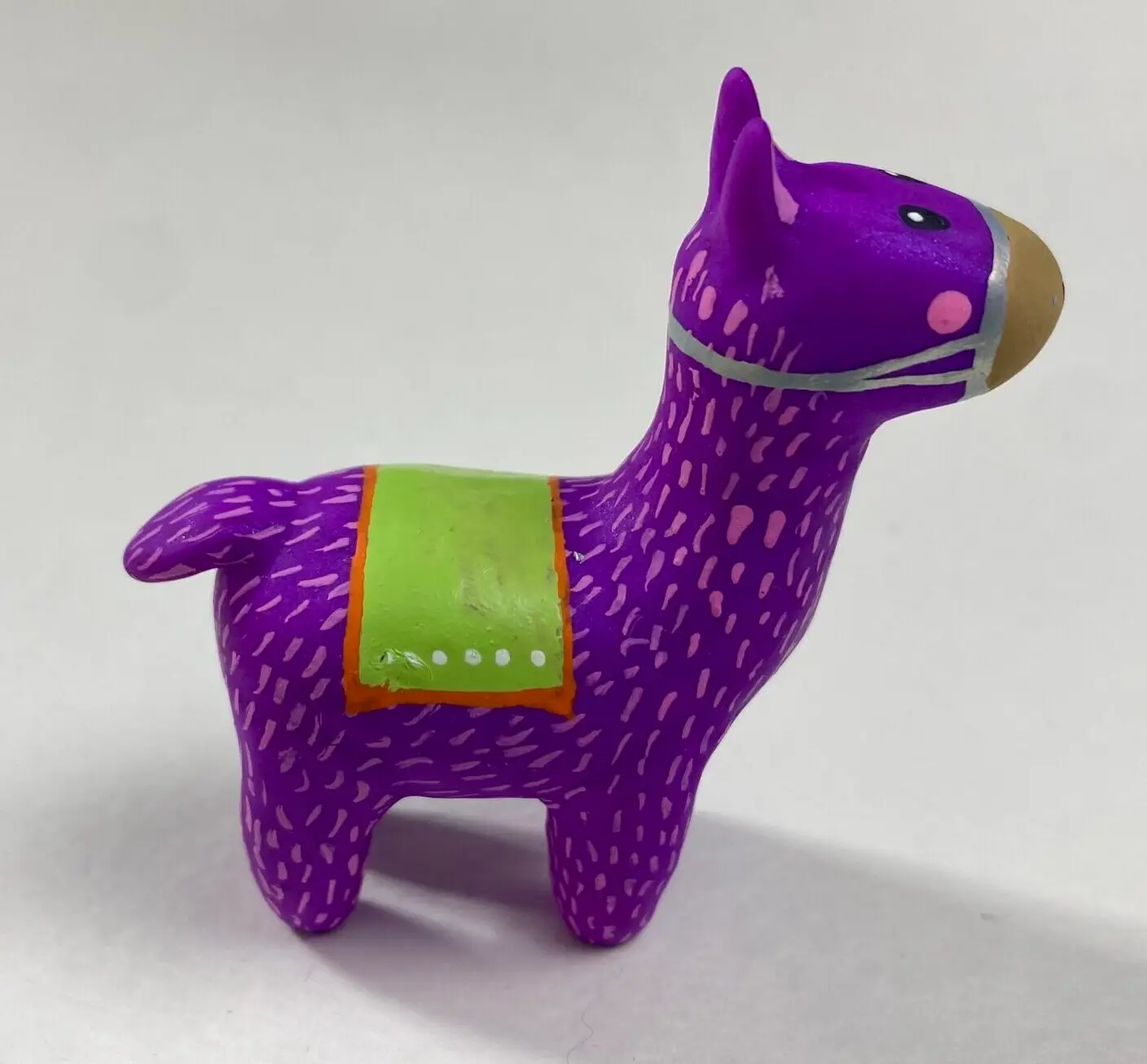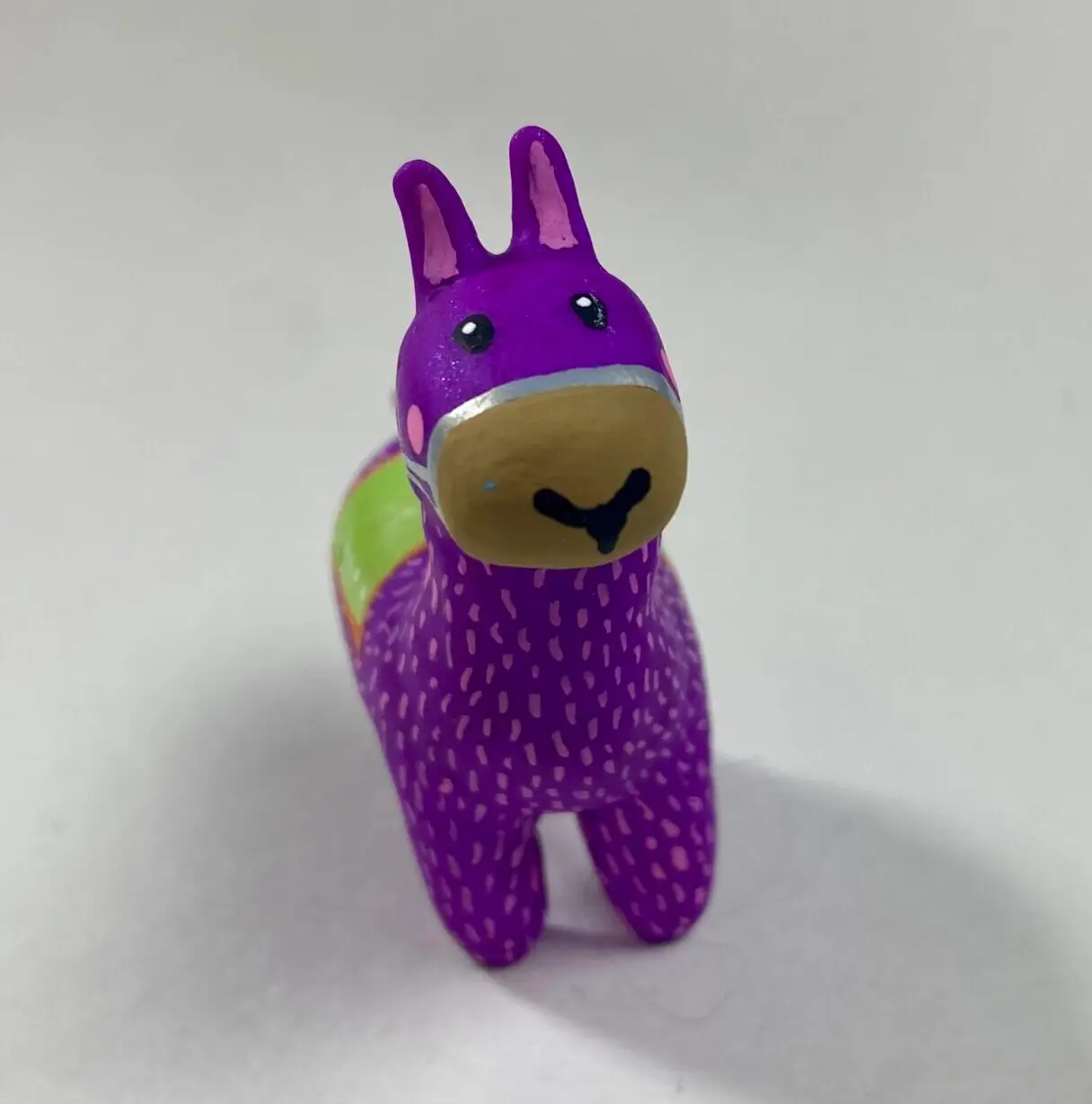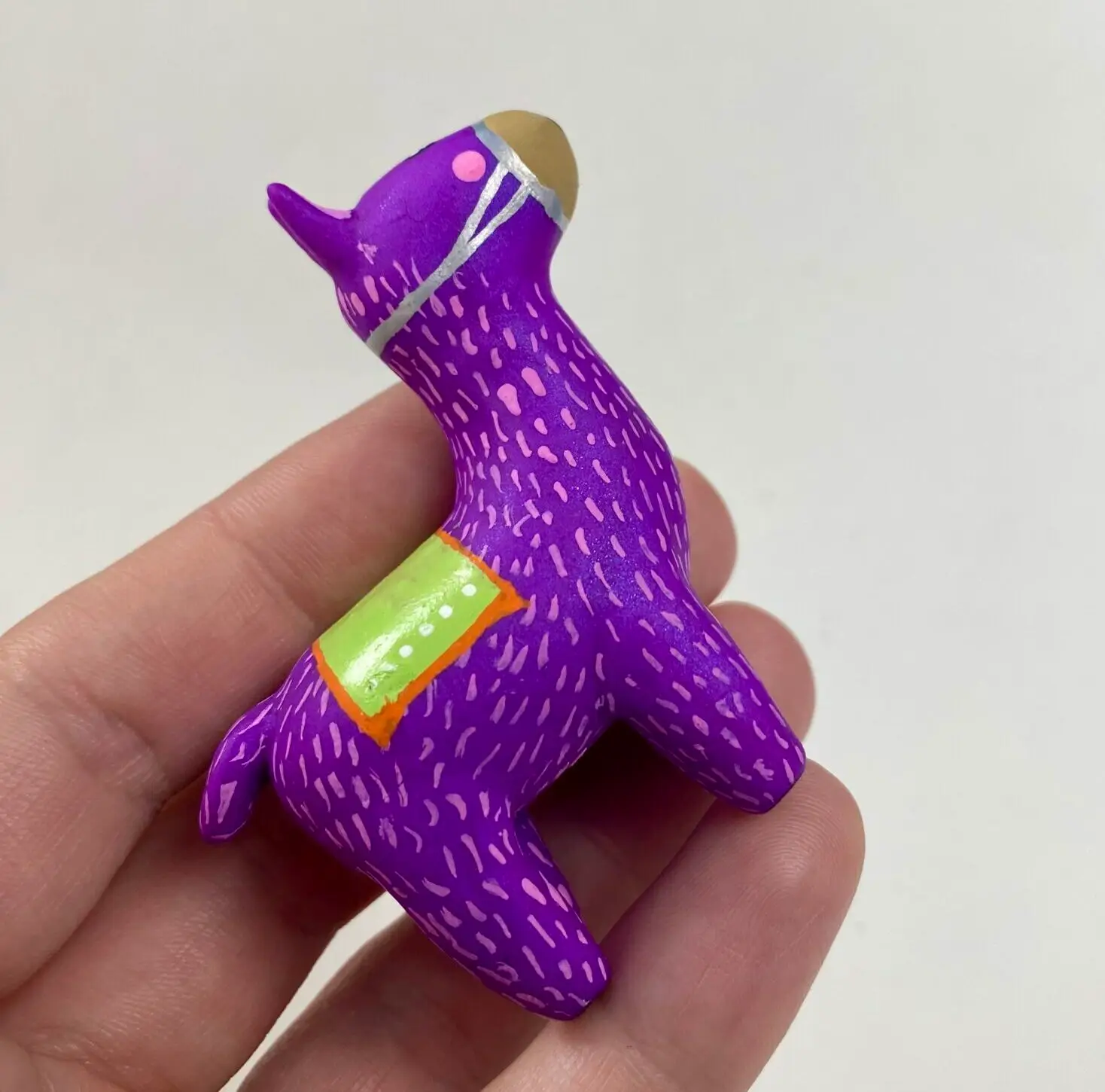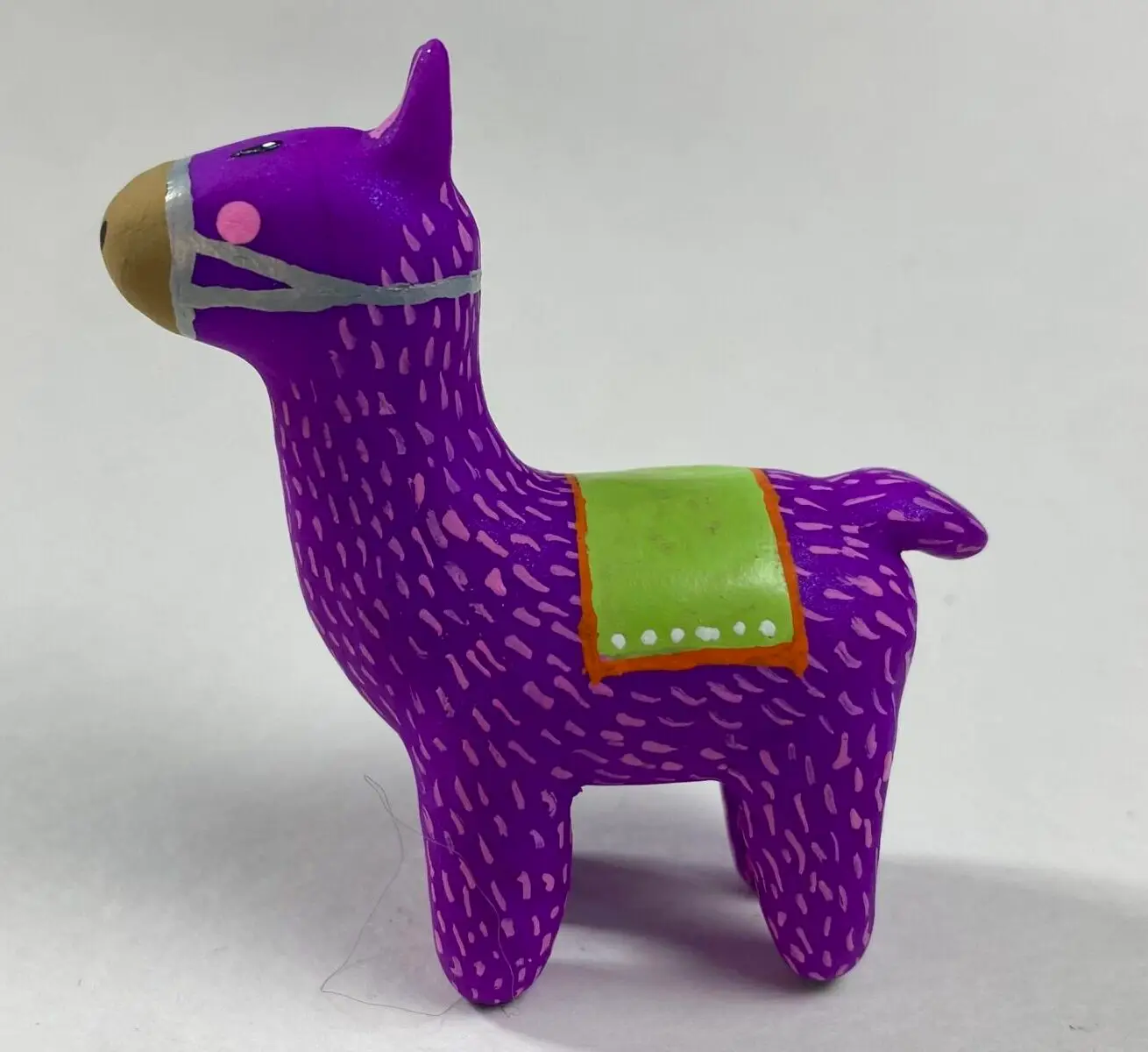 - This purple polymer clay llama radiates joy with its vivid colors and cute design. Because I paint each one with care, it pops despite its size. Whether you love llamas, crave colorful art, or want a tiny charm, it’s ideal for your space. For example, display it solo, stack it with my blue or pink llamas, or start a vibrant collection!